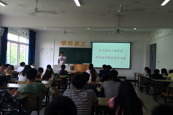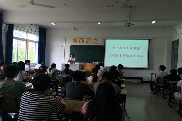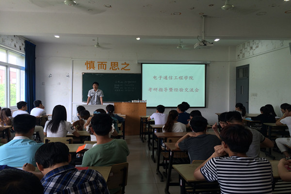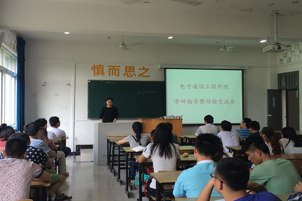 本网讯(通讯员:储金华 隋忠霞)为做好2016届毕业生考研指导工作,营造良好的考研氛围, 5月20日,电子通信工程学院特邀合肥工业大学李声文老师及2015年成功考取研究生的6名学生代表召开了一场面对面的考研指导交流会。