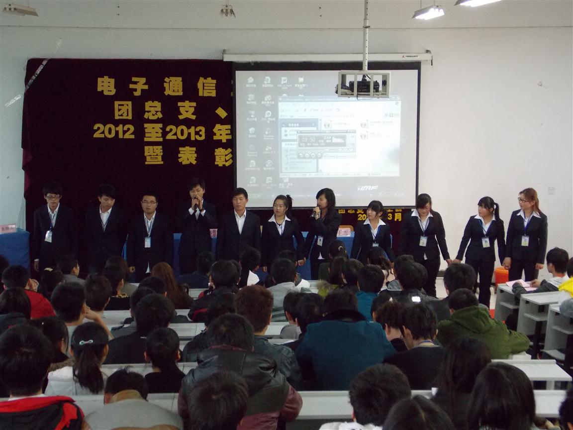 (通讯员:电院学生会记者团) 3月6号中午,电子通信工程学院在电子楼414举行了电子通信工程学院团支书学生会2012至2013年度总结暨表彰大会。出席表彰大会的有学管秘书兼学生会指导老师陈丽;党支部书记仝晓慧辅导员;实验楼主管王志老师;还有各位学生会主席及全体学生会成员和各二级学院学生会代表