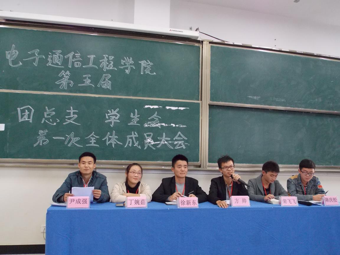 (图文、电院大学生记者团)11月6日,电子通信工程学院第五届团总支学生会在公教楼201召开了第一次全体成员大会,出席本次大会的有学生会主席徐新东,团总支副书记方帅,副主席尹成强,陈庆松,张凯,荣飞飞,丁婉茹、学生会全体部长以及13级成员。