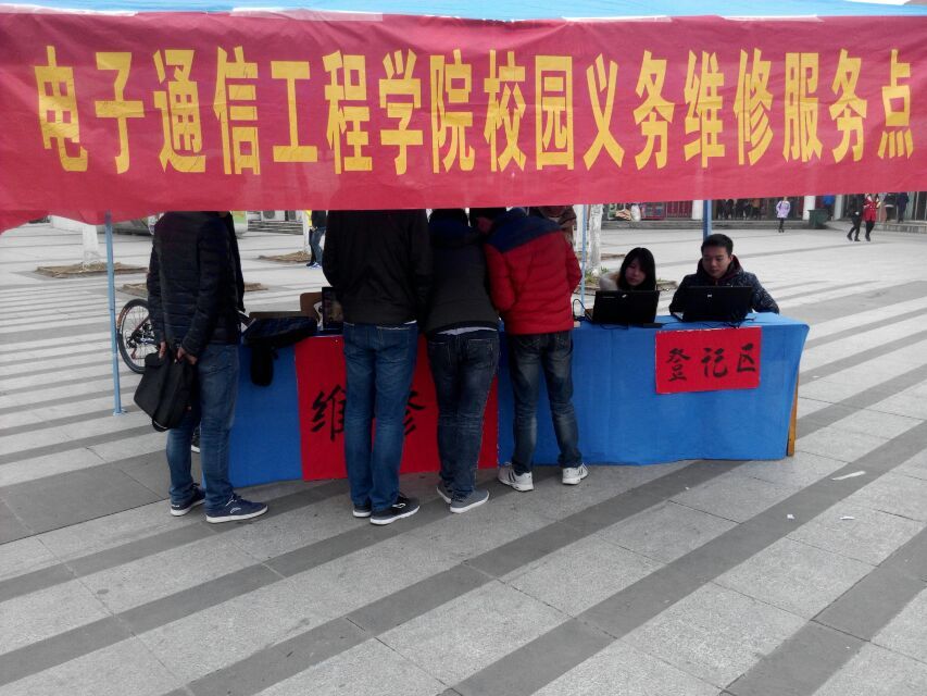为了宣扬雷锋精神,3月14日, 电子通信工程学院“家电义务维修”活动在翰林广场正式拉开了帷幕。该活动为期三天,是由电子通信工程学院团总支学生会主办,科技与创新协会协办,旨在为大家解决由家电故障带来的困扰,为大家提供便捷的小家电维修服务。