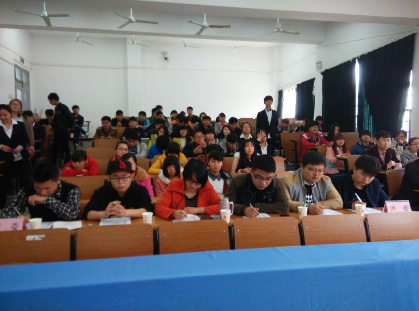 3月27日中午12点,电子通信工程学院在教学楼12栋202教室举办了第11届“青春励志”诗歌朗诵比赛决赛。出席本次活动的评委有学生会指导老师陈丽,上一届诗歌朗诵比赛冠军俞遥,学生会主席张凯,副主席李旭升、石昊,学习部部长张明。