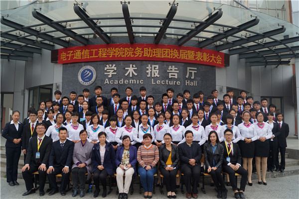 本网讯(通讯员:储昭银摄影:郑大鹏、罗肖)11月5日中午,电子通信工程学院在学术报告厅召开院务助理团换届暨表彰大会。电子通信工程学院副院长钱颜娇、行政秘书兼院助理团指导老师储金华、学管秘书、教学秘书、实验室主管、及部分辅导员参加会议。学校各兄弟社团代表也应邀参加会议。
