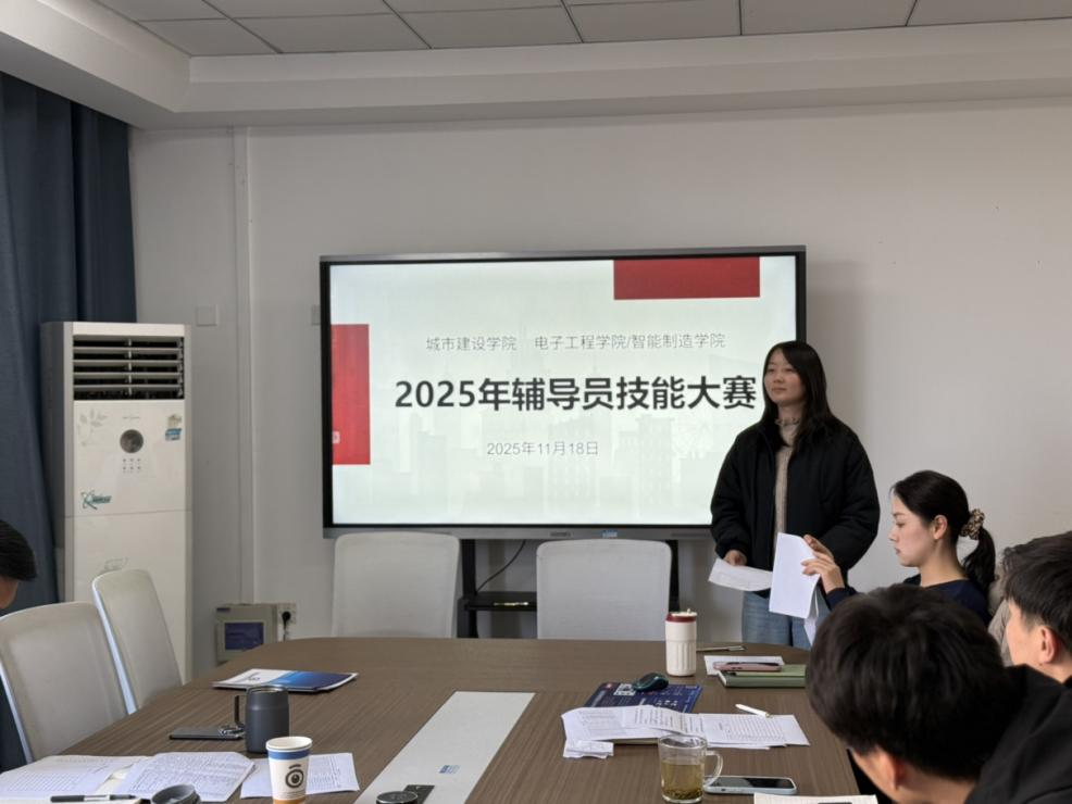 本网讯(通讯员:阳丽)为深入落实立德树人根本任务,全面提升辅导员队伍的职业化、专业化素养,搭建跨学院育人经验交流平台,11月18日下午,电子工程学院/智能制造学院与城建学院联合举办的辅导员技能大赛在学术交流中心圆满落幕。城建学院行政院长崔风波、电智学院行政院长汪明天担任大赛评委,两学院学管秘书及全体辅导员参加本次活动。