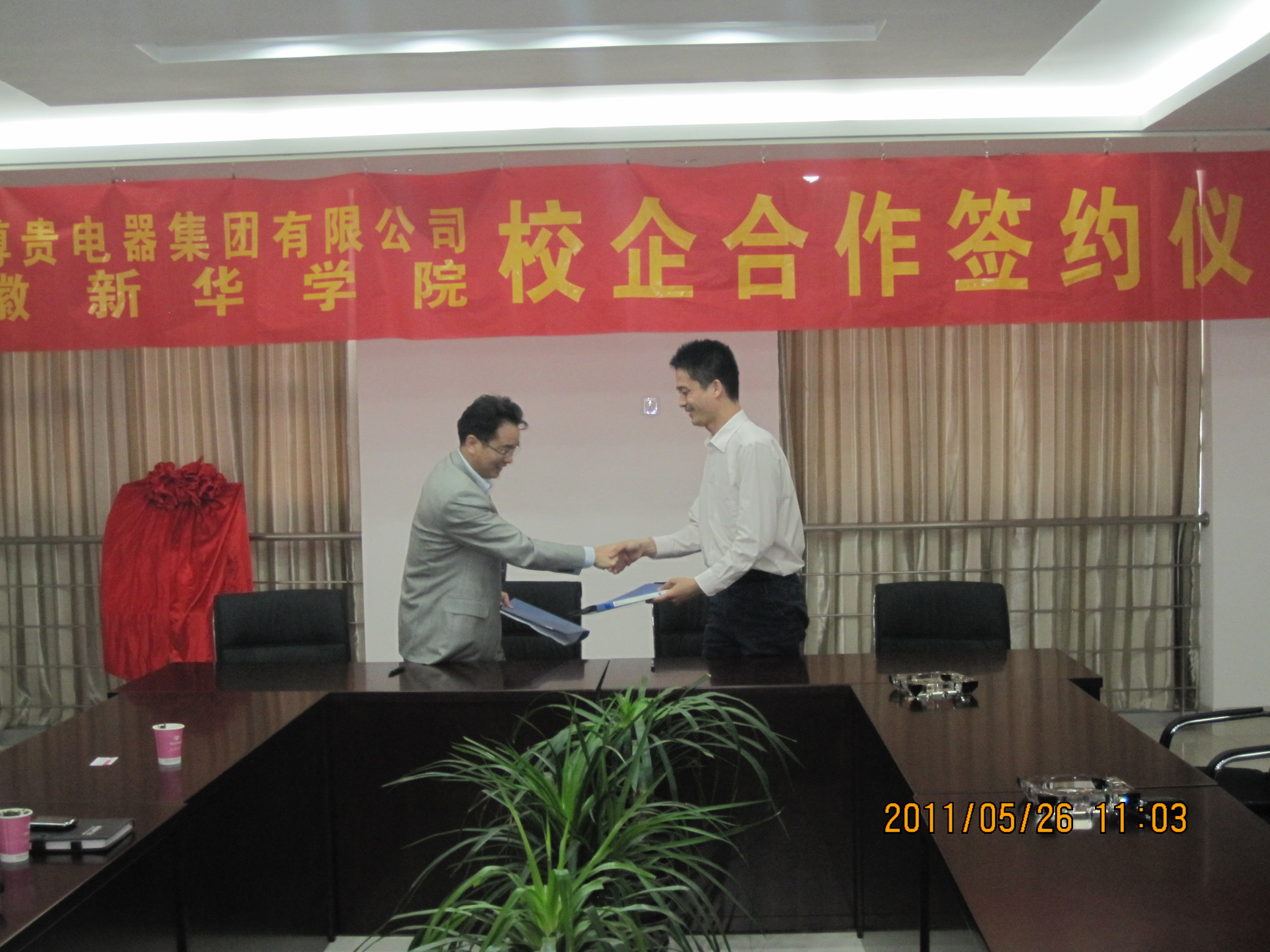 马凤余在讲话中表示,尊贵电器集团现已正式成为安徽新华学院校企合作的伙伴,校企之间形成了良好的合作机制,相信在双方的共同努力下,建成后的“校企合作实习就业基地”必将为尊贵电器集团培养出更多的专业人才,同时将为安徽新华学院电子通信工程学院教学和就业注入新的活力。