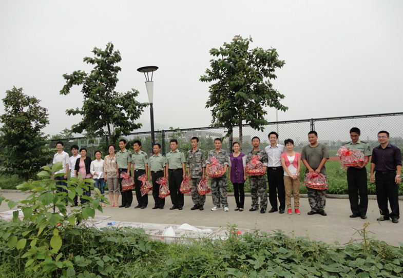中秋节来临之际,电子通信工程学院行政院长操宏华带领学管秘书一起看望了承担2011级新生军训任务的官兵,慰问了正在参加军训的新生。