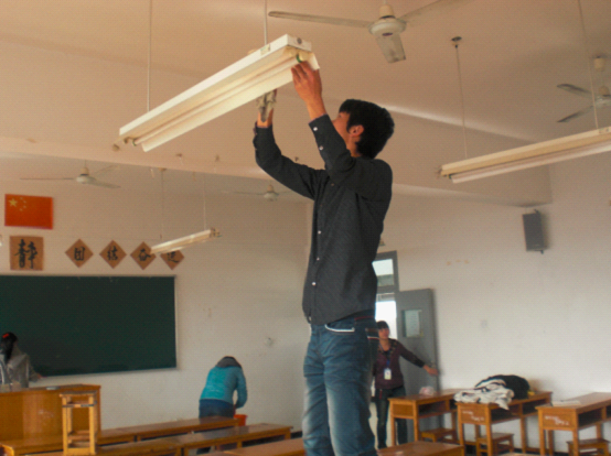 在此次活动中,各部门各司其职,每个部门负责不同的位置,组织部负责清除牛皮癣广告,其他部门每个部门负责一个教室,活动在中午12点正式启动,学生会所有成员都按照分配好任务,在电院内行动起来。其中,清除牛皮癣广告的要将广告纸全部清除,有的广告因时间久了已牢牢地贴在了宣传栏上,很难清除,他们就用小刀慢慢地将其刮下来,既要清除了贴纸又没有在宣传栏上留下痕迹,这很好的体现了他们工作的细心与认真;打扫公共教室与多媒体的为了更彻底的清除桌子上的笔痕和地面上的垃圾残留物,他们用洗衣粉、刷子等清洁用品,让教室焕然一新,让人一进去就有一种清新的感觉。