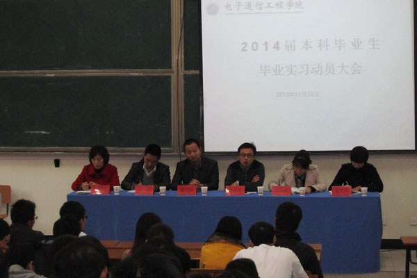 11月13日中午,电子通信工程学院在教12号楼202教室举行2014届本科毕业生毕业实习动员大会。电子通信工程学院副院长操宏华及相关同志,航嘉电器人力资源部经理魏泽银参加会议。