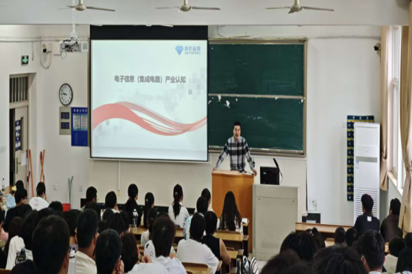本活动邀请了龙芯中科技术股份有限公司张文阳(高级工程师)、安徽青软晶芒微电子科技有限公司王文明(高级工程师),分别为新生带来了《自主 CPU 发展道路及产业生态建设》、《电子电路产业认知——以集成电路为例》两个专题讲座。专家围绕专业发展、行业概况、企业需求及专业课程体系等内容进行深入讲解,并在讲座后针对学生提出的关于大学生活、学习方法、考研规划等提问题一一作出了细致解答。