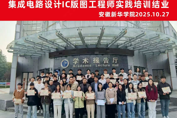 本网讯(通讯员:张晋安)为提升学生集成电路IC版图设计专业技能,增强就业竞争力,更好地对接行业发展需求。2025年10月28日下午,电子工程学院/智能制造学院在学术报告厅开展“集成电路设计IC版图工程实践培训”结业大会。 合肥芯火职业技能培训学校校长梁栋、校长助理刘昌麟,电子工程/智能制造学院副院长白志青、电子系主任王亓剑以及集成电路企业代表、专业教师和2022级集成电路方向学生参加了会议。会议由王亓剑主持。