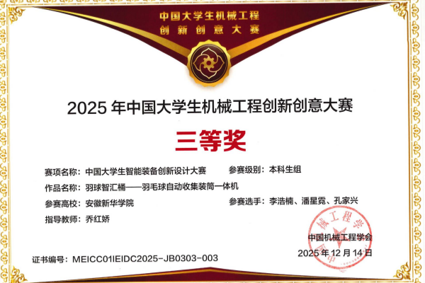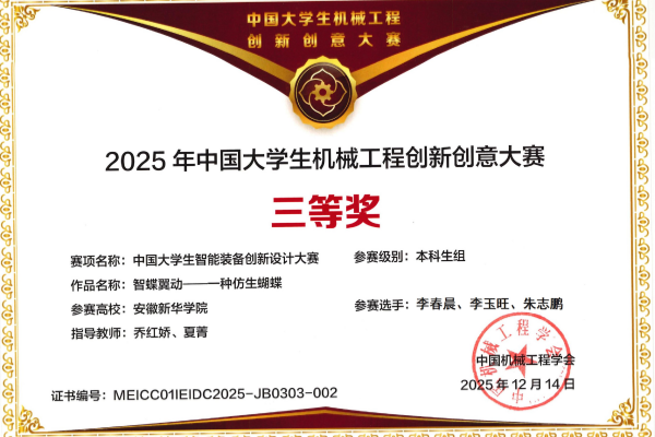 本届大赛由中国机械工程学会主办,旨在推动大学生工程实践与创新能力培养,吸引了全国众多高校参与。本届大赛共收到来自全国两百多所高校的1613项作品,经过校赛、省(区域)赛的选拔,共推荐了428项作品进入全国赛。最终,我院参赛团队在乔红娇等教师指导下,凭借扎实的专业基础、出色的团队协作与创新意识,在多轮评审中脱颖而出,并最终斩获国赛三等奖3项的优异成绩。