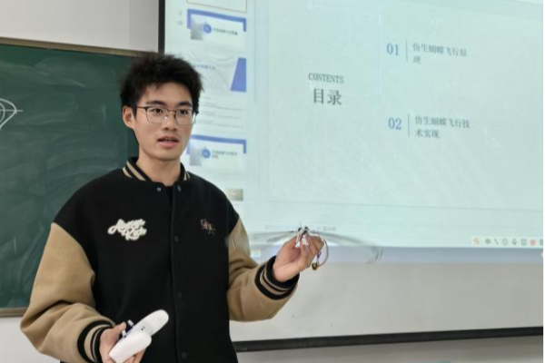 比赛现场气氛热烈,互动积极。各参赛团队通过实物演示、三维动画、设计图纸与创新报告等多种形式,全面呈现作品从构思到实现的全过程。在“仿生蝴蝶”赛道,同学们综合运用机械设计、仿生学原理、单片机控制及传感器技术,采用碳纤维与3D打印工艺,成功实现蝴蝶模型的短时自主飞行,展现出突出的跨学科学习与实践能力。“创新设计”赛道则紧密对接产业实际需求,涌现出“叶菜类特定水产品初加工机械”“叶菜洁净化处理包装一体化设备”等兼具实用性与创新性的作品。