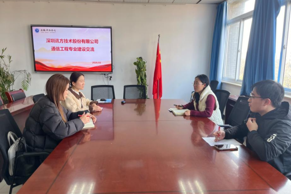 本网讯(通讯员:孙美玲)3月10日下午,电子工程学院/智能制造学院与深圳市讯方技术股份有限公司在教14-405会议室开展了“通信工程专华为ICT工作室建设交流”活动。讯方技术安徽培训业务部经理车蕊蕊、通信系孙美玲、黄贤涛、张梦思等参与了此次交流。