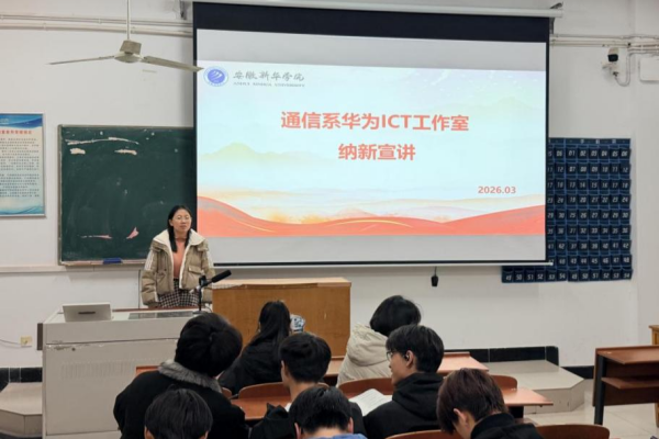 本网讯(通讯员:张梦思)为深化产教融合,助力通信工程专业学子成长,2026年3月17日,电子工程学院/智能制造学院通信系“2026年度华为ICT工作室”纳新活动在教14#105顺利开展。通信系主任助理孙美玲、深圳市讯方技术股份有限公司安徽培训业务部经理车蕊蕊出席本次活动,24级、25级通信工程专业学生积极参与、踊跃报名,现场氛围热烈。