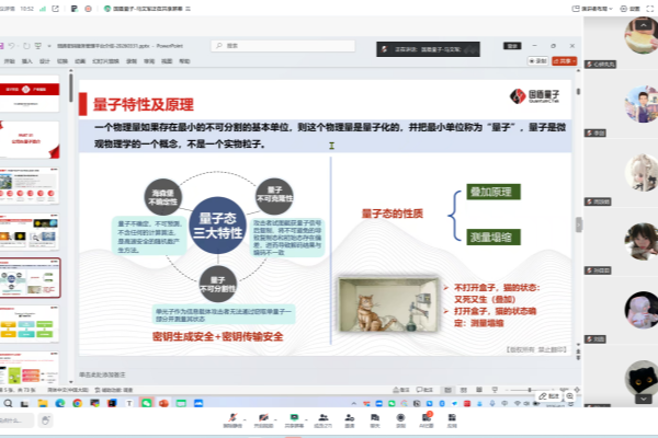 本网讯(通讯员:孙美玲)为深入推进产教融合、科教融汇,助力学生在“大学生新一代信息通信科技大赛”产教融合5G+创新应用赛中突破量子通信方向创作瓶颈,提升参赛作品的技术含量与实践价值,4月1日,电子工程学院/智能制造学院通信工程专业特邀科大国盾量子技术股份有限公司技术总监马文军、客户经理朱碧园,开展线上竞赛专题指导讲座,学院参赛学生及指导教师线上参会、全程聆听学习。
